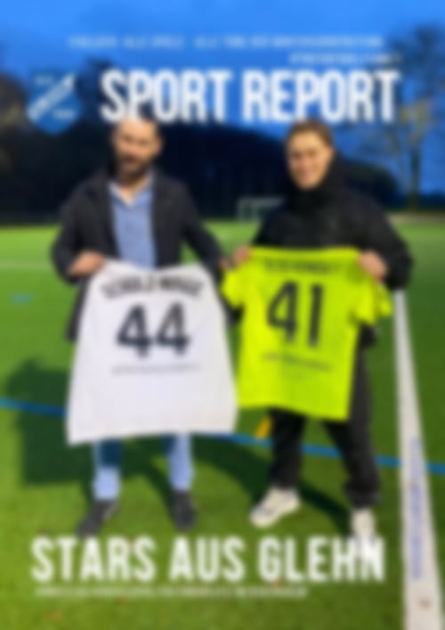 Der Sport-Report des SV Glehn bietet viele Neuigkeiten rund um den Verein und seine Kooperationspartner. Er erscheint im Regelfall monatlich kurz vor den Sonntag-Heimspielen der 1. Mannschaft und wird in zahlreichen Glehner Geschäften kostenlos ausgelegt. Die erschienenen Ausgaben der Saison 2022/23 sind nachfolgend aufgeführt und können mit einem Klick auf das Bild nochmals online gelesen werden. Wir wünschen Ihnen viel Spaß bei der Lektüre.